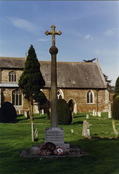 Each year services are held, and wreaths are laid, at the cross in the churchyard (see below). This is followed by a ceremony at the War Memorial which is at the crossroads of Lynn Road, Hunstanton Road, Station Road and Chapel Road. Perhaps this year (2017), and in years to come, we will remember the only civilian fatality in Dersingham as a result of an action of war - Mrs. Violet Ellen Dunger who died on 21st September 1916 following a bomb that was dropped on Doddshill on the night of 2nd/3rd September 1916. Read more in Darkening Skies - Zeppelin Attacks on Dersingham 1915 and 1916